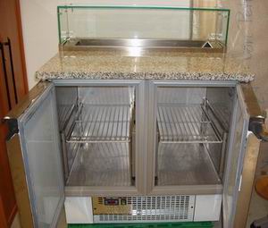 Gastronomiebedarf: Die Saladette gibt es in verschiedenen Variationen und ist ebenfalls als Salatbar und Pizzakühltisch verwendbar. Die Saladette ist in einfacher Ausführung, mit Aufsatz und Glastüren, sowie Mamorplatte erhältlich. Auch die Größen variieren, von ein- bis dreitüriger Ausfertigung kann man eine Saladette erwerben. Außerdem ist aufgrund der unempfindlichen Oberfläche der Saladette eine leichte Reinigung möglich. Das erspart jede Menge Arbeitszeit.